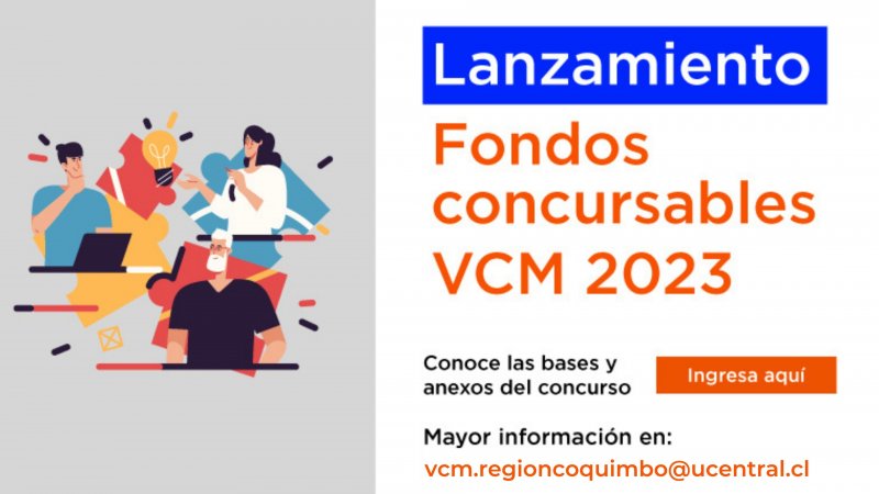 La Dirección de Vinculación con el Medio convoca a docentes, egresados(as) y estudiantes de la Universidad Central de Chile a postular sus proyectos a la X versión de los Fondos Concursables VCM 2023. A través de esta instancia, se financiarán aquellos proyectos que promuevan e incentiven acciones de vínculo académico con el medio donde, a partir de la cual se genere una interacción de carácter bidireccional con actores relevantes del entorno, permitiendo retroalimentar de manera efectiva el quehacer académico -formativo, poniendo un especial énfasis en las líneas temáticas definidas como prioritarias para el área de VCM.