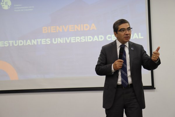 Este jueves 4 de abril, las autoridades de la Universidad Central de Chile, encabezadas por el presidente de la Honorable Junta Directiva, Patricio Silva; el Rector, Santiago González; el Vicerrector Regional, Jaime Alonso dieron la bienvenida a los nuevos estudiantes que se integraron a la comunidad universitaria en el presente año académico.