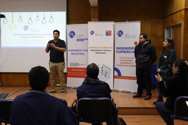 La feria de emprendimiento, innovación y proyectos tecnológicos, organizada conjuntamente por las carreras de Ingeniería Civil Industrial (ICI), Ingeniería Civil en Computación e Informática (ICCI) e Ingeniería Comercial, ofreció una oportunidad para que las y los estudiantes desarrollen habilidades valiosas como pensamiento creativo, resolución de problemas, trabajo en equipo y liderazgo de proyectos. La instancia contó con la participación de representantes de la Fundación Emprepólis y Sercotec, quienes expusieron ante las y los asistentes.