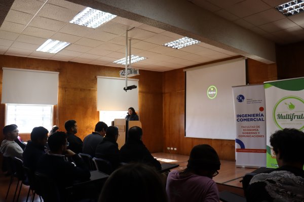La Universidad Central sede Región de Coquimbo fue el escenario de una enriquecedora jornada de aprendizaje y motivación con la charla "Multifruts, una historia de dedicación, crecimiento y compromiso con el bienestar", que reunió a 58 participantes entre estudiantes, docentes y directivos. La actividad se enmarcó en las asignaturas de Emprendimiento de Ingeniería Comercial y de Innovación y Emprendimiento de Ingeniería Civil en Computación e Informática.