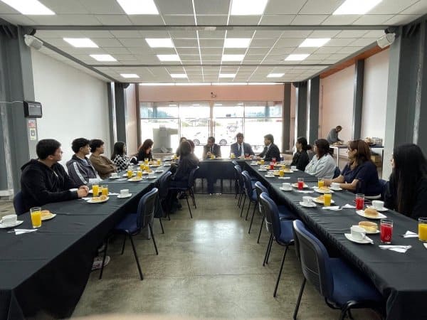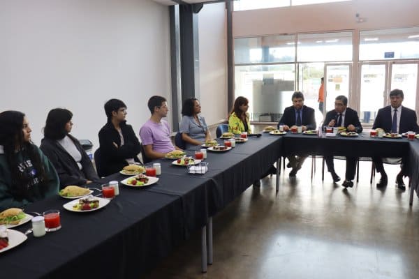 El Vicerrector Regional, Jaime Alonso, junto los directores regionales, Roni Pérez, Joel Devia y Verónica Figueroa y la Subdirectora de la Dirección de Apoyo y Vida Estudiantil (DAVE), Paz Alvial, desayunaron con un grupo de 21 estudiantes de primer año que recibieron de parte de la Universidad Central Región de Coquimbo una distinción por su trayectoria educativa.