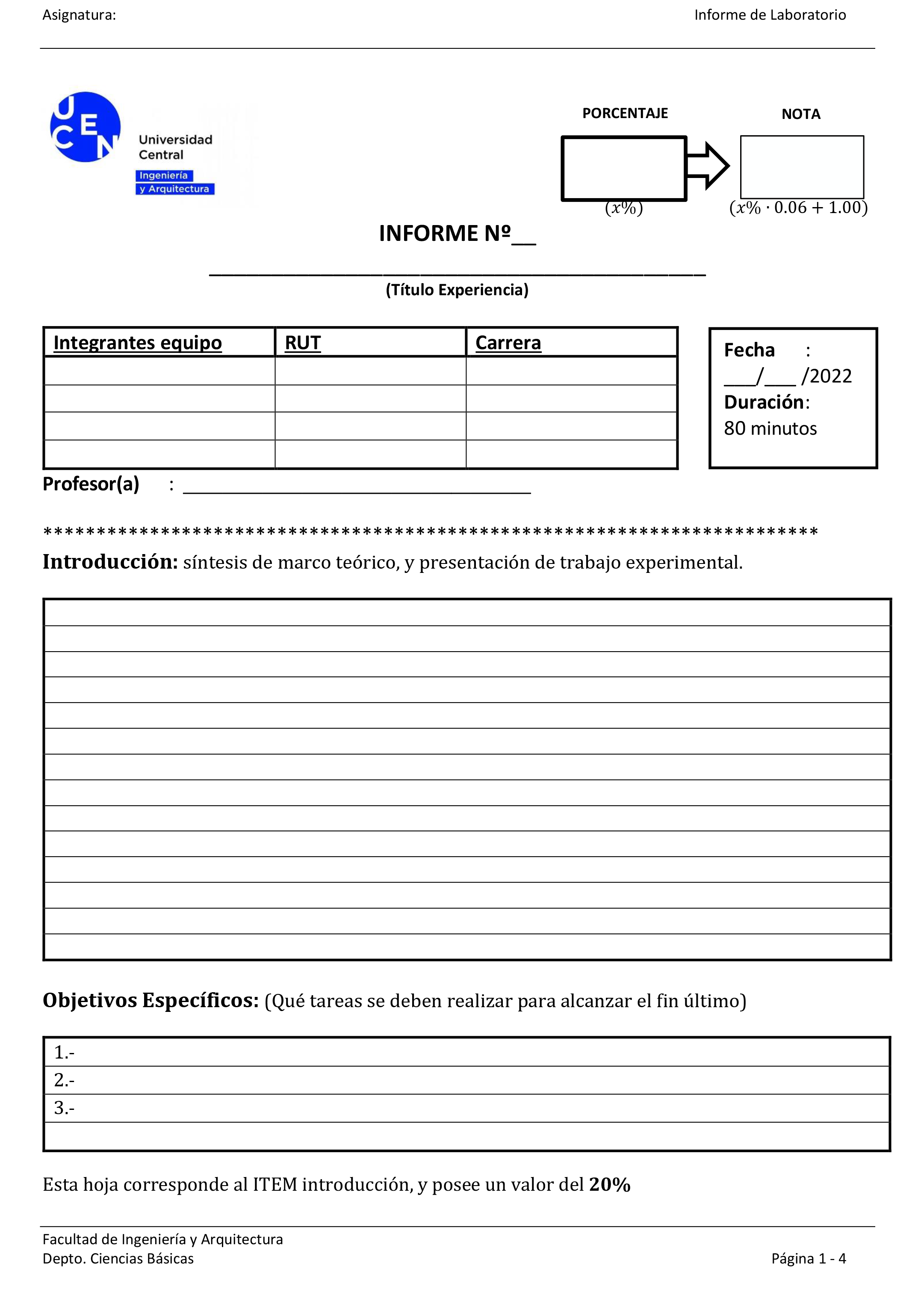 El Laboratorio de Física, perteneciente al Departamento de Ciencias Básicas de la Facultad de Ingeniería y Arquitectura de la Universidad Central de Chile, tiene como misión aportar los aspectos prácticos - experimentales en la asignatura de Física que correspondan al plan de estudios de cada una de las seis carreras de ingeniería pertenecientes a la Facultad, y también colabora con equipos e instalaciones con otras Facultades, incluyendo a aquellas asignaturas de planes especiales que se imparten en jornada vespertina.
