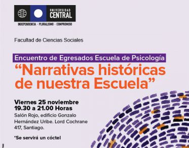 El viernes 25 de noviembre 2016 la Facultad de Ciencias Sociales realizará un Encuentro de Egresados de la Escuela de Psicología que se ha denominado "Narrativas históricas de nuestra Escuela".