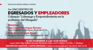 La actividad que se llevará a cabo el próximo miércoles 16 de diciembre, tendrá como principales ponentes a los abogados Juan Carlos Manríquez Rosales, Socio Fundador de Manríquez, Benavides & Cía., Licenciado de la Universidad de Valparaíso, con Post grado en Derecho Penal Económico y de la Empresa de la Universidad Castilla - La Mancha, España; y el ex candidato presidencial Ricardo Jacob Israel Castro ex candidato presidencial, y fundador del Instituto Chileno de Estudios Municipales de Chile (ICHEM).