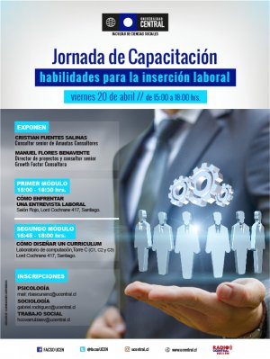 Cerca de 40 egresados y egresadas de la Facultad de Ciencias Sociales (FACSO) de la Universidad Central participaron el 20 de abril en la jornada de Capacitación ·Habilidades para la inserción laboral”.