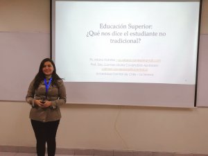 Con la ponencia titulada: Educación Superior ¿Qué nos dice el estudiante no tradicional?, enmarcada como tesis de investigación de postgrado, para el Magíster en Docencia para la Educación Superior de la Universidad Central, guiada por la académica Dra. Carmen Gloria Covarrubias Apablaza.
