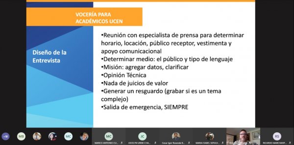 La Dirección de Comunicaciones Corporativas busca potenciar a sus voceros con herramientas de comunicaciones para que puedan llevar de mejor forma el conocimiento académico a la sociedad.