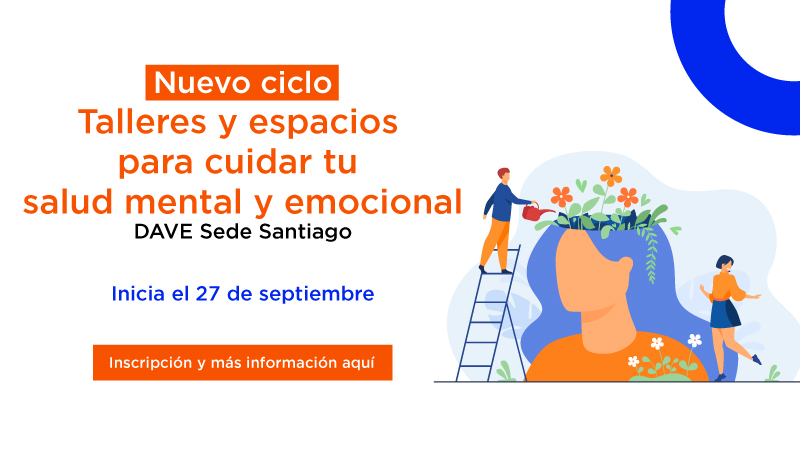 En el marco del plan de Intervención Temprana en Salud Mental Estudiantil, el equipo de Consejería y Salud Mental de la Dirección de Apoyo y Vida Estudiantil (DAVE) sede Santiago, invita a los y las estudiantes a participar de los distintos talleres online que se realizarán durante el mes de septiembre y octubre, con el objetivo de continuar entregando herramientas para el cuidado de la salud mental y emocional, en un contexto que requiere poner en marcha todos los recursos personales de los que se disponen.