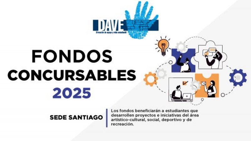 Con el objetivo de facilitar herramientas técnicas, logísticas y/o recursos económicos que permitan un óptimo desarrollo de iniciativas de la comunidad estudiantil de Santiago en proyectos del área artístico-cultural, social, deportivo y de recreación, la Dirección de Apoyo y Vida Estudiantil (DAVE) invita a postular a los Fondos Concursables DAVE 2025:
