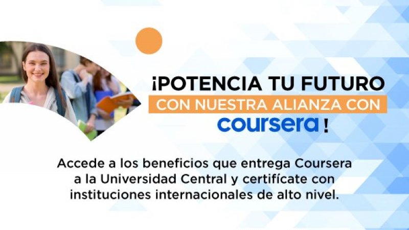 Ante el avance de la alta competitividad en el mundo profesional, la Universidad Central estableció una alianza con Coursera que ofrece dos grandes beneficios sin costo para sus estudiantes, docentes y funcionarios.