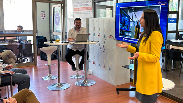 La jornada comenzó con unas palabras de bienvenida de la directora de la Dirección de Transformación Digital Educativa, Pamela Riquelme, quien subrayó el impacto transformador de las certificaciones en el futuro profesional de nuestros estudiantes y el compromiso de la Universidad con su formación en competencias digitales. Posteriormente, Jorge Carmona, gerente de éxito, y Paula Muñoz, consultora de soluciones de Coursera, fueron los encargados de presentar el valor de las microcredenciales y certificaciones en áreas clave y cómo se alinean con las habilidades más demandadas por la industria global.