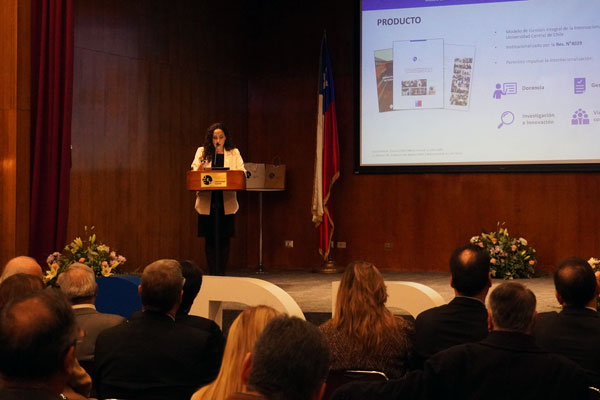 En el marco del proyecto Fondo de Desarrollo Institucional (FDI) «Democratización de la Internacionalización en la Universidad Central», que cuenta con el apoyo del Ministerio de Educación (Mineduc), se realizó el pasado miércoles 2 de julio, en el Aula Magna Fundadores, la ceremonia de lanzamiento del nuevo Modelo de Gestión Integral de la Internacionalización de nuestra universidad. La actividad, organizada por la Dirección de Relaciones Internacionales (DRI), tuvo como objetivo presentar el documento que establece los principales lineamientos y principios para el desarrollo transversal del componente internacional en el quehacer de toda la comunidad centralina.