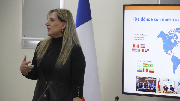 La actividad, realizada en conjunto con la Dirección de Apoyo y Vida Estudiantil (DAVE), fue presidida por la Directora de la DRI, Karen Molina, quien destacó la importancia de "acercar las oportunidades y experiencias internacionales a toda la comunidad estudiantil, promoviendo experiencias que agreguen valor a su formación con una perspectiva internacional acorde a los requerimientos del mundo actual."