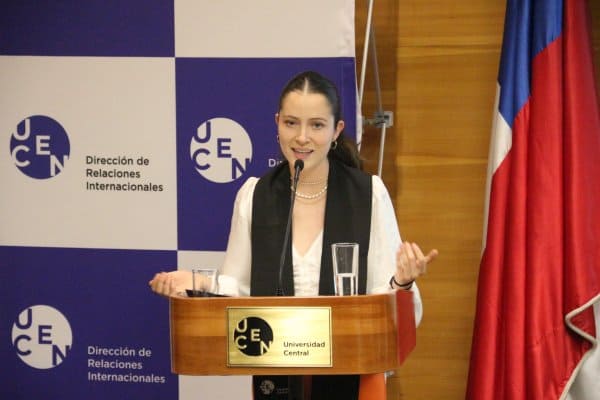 Por otra parte, en representación de los becarios, la estudiante Javiera Estay, de la carrera de Administración Pública de nuestra sede de Coquimbo, dirigió unas palabras, donde destacó como la voluntad personal es primordial en cumplir con las metas personales, asimismo como la perseverancia y la curiosidad pueden convertirlos en agentes de cambio. Agradeció a la Universidad Central, por el respaldo, y muy especialmente a la Dirección de Relaciones Internacionales, quienes, desde un inicio, les brindó a ella y sus compañeros, “apoyo incondicional no sólo en la postulación, sino que en todo el proceso que ha sido ser beneficiario de la Beca”.