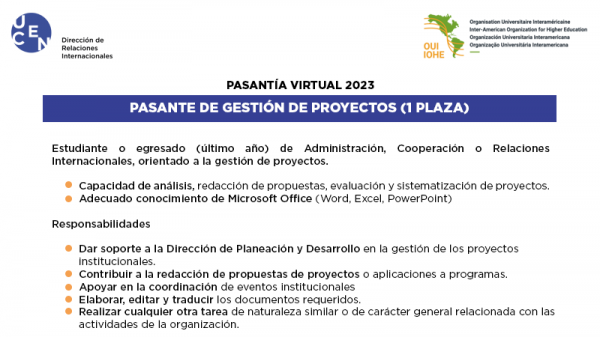 DRI invita a postular a las Pasantías Virtuales de la Secretaría General Ejecutiva de la Organización Universitaria Interamericana (OUI)