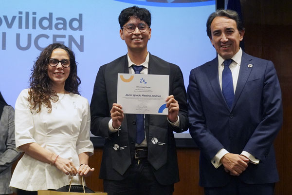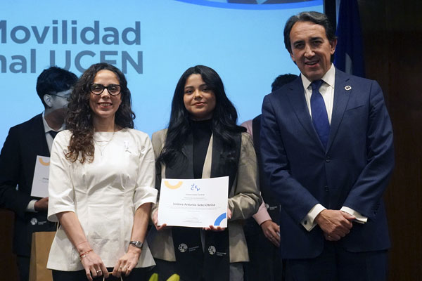Durante la actividad, Denisse Moya, estudiante de Ingeniería Civil en Minas, compartió su experiencia tras realizar su movilidad en la Universidad Politécnica de Madrid durante el periodo 2024-02, invitando a las nuevas generaciones a participar en programas similares. El cierre estuvo a cargo de Tomás Gómez, estudiante de Ciencia Política y becario que viajará a la Universidad Autónoma de Madrid, quien agradeció a la UCEN y motivó a sus pares a «no desaprovechar este privilegio que transforma la forma de ver el mundo».