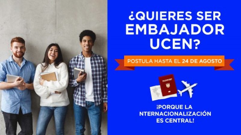 La Dirección de Relaciones Internacionales invita a estudiantes de pregrado UCEN a convertirse en Embajadores UCEN para acompañar y guiar a los y las estudiantes internacionales que visitarán la UCEN durante el segundo semestre. Si te interesa realizar un intercambio durante tu carrera académica, podrás considerar esto como un primer acercamiento a una experiencia internacional e intercultural.