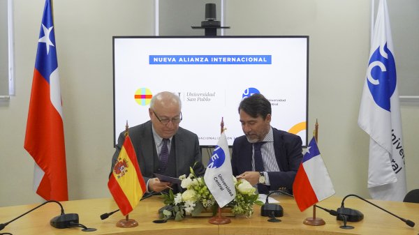 En una solemne jornada la Universidad Central de Chile anunció la firma de convenios con dos prestigiosas universidades: la Universidad UTE de Ecuador representada por Rebeca Illescas y la CEU Escuela Internacional de Doctorado (CEINDO) de España, representada por Leopoldo Abad.