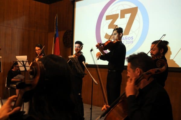 Efectuado en el aula magna Fundadores del centro de extensión Hugo Gálvez Gajardo, el aniversario dio inicio con ‘Ensamble Oktonal’, octeto de cuerdas que propone la fusión e inclusión de la música popular y docta. Así, los invitados pudieron disfrutar de la interpretación de "Más que Nada", del compositor brasileño de Bossa Nova, Sergio Mendes, y el arreglo para octeto de cuerdas de "Gracias a la Vida", de la cantautora chilena Violeta Parra.