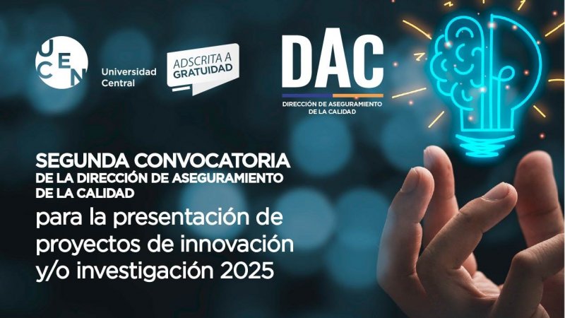 La Dirección de Aseguramiento de la Calidad invita a académicos y académicas a participar en su segunda convocatoria de proyectos de investigación y/o innovación relacionados con promoción de la calidad, contribución e impacto del aseguramiento de esta en la Universidad Central de Chile.