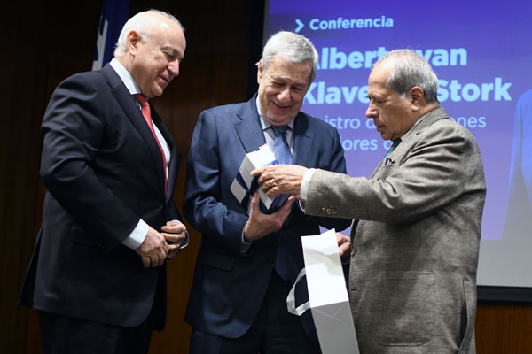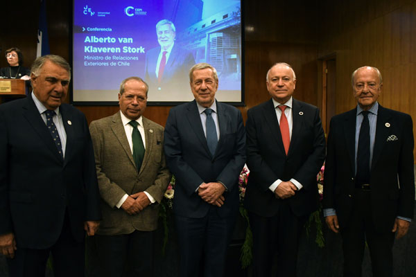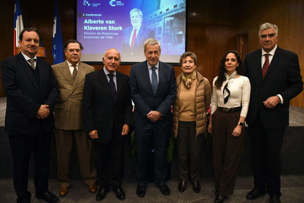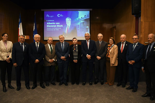 El directivo recordó las primeras actividades organizadas por el CEPI desde su creación en mayo, entre ellas la presentación del libro Con sello diplomático del profesor Samuel Fernández Illanes y la conferencia del expresidente del Consejo de Ministros del Perú, Pedro Cateriano Bellido. «Esta es la tercera actividad en un corto tiempo de existencia del CEPI», indicó, enfatizando que la iniciativa busca contribuir a la reflexión estratégica sobre los grandes temas internacionales. En ese contexto, subrayó la relevancia de la trayectoria del ministro: «El canciller van Klaveren es un reconocido académico, cuyos escritos son citados y consultados ampliamente, y esa vasta vida académica le otorga una consolidación muy importante en la conducción de la política exterior de nuestro país».