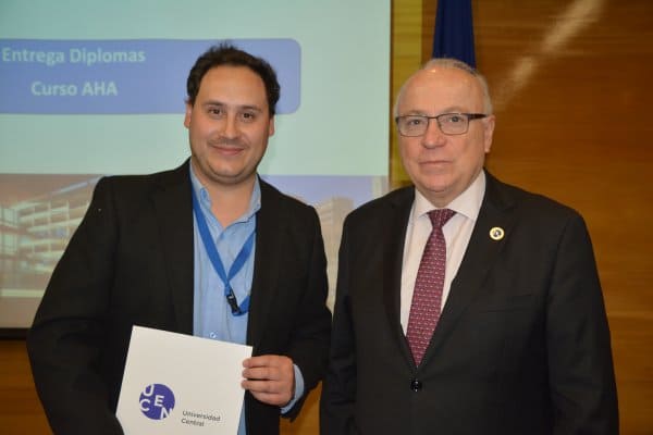 Para celebrar el éxito tanto de esta como de las demás iniciativas llevadas a cabo por el Comité de Emergencia institucional, el pasado martes 21 de noviembre se llevó a cabo una ceremonia de entrega de las certificaciones AHA, acto que fue realizado en el auditorio Carlos Blin Arriagada y que contó con la presencia de las más altas autoridades de la U. Central.