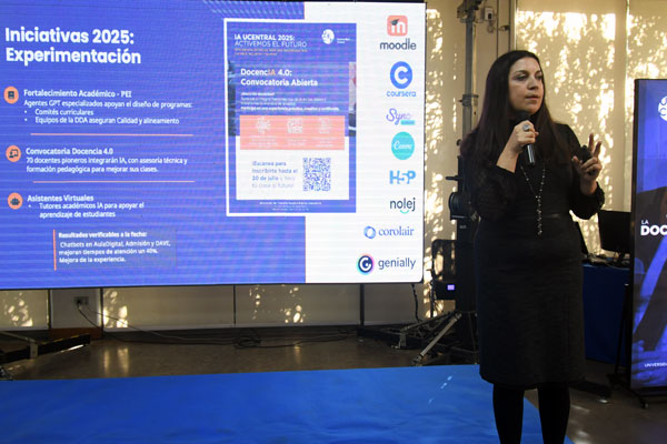 Este evento también marcó el inicio oficial de la implementación del Plan de IA 2025 en la UCEN, una hoja de ruta destinada a integrar la IA en los procesos formativos, de gestión y aprendizaje, con un enfoque ético, estratégico y participativo. La jornada se realizó el 24 de julio, en modalidad híbrida, desde el Salón de Eventos del edificio Vicente Kovacevic II.