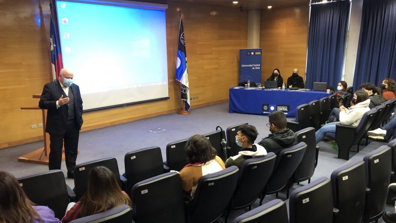 En la instancia de encuentro con los dirigentes estudiantiles, el vicerrector académico, Juan Pablo Prieto, explicó los alcances del nuevo Proyecto Educativo Institucional (PEI) CREA UCEN.