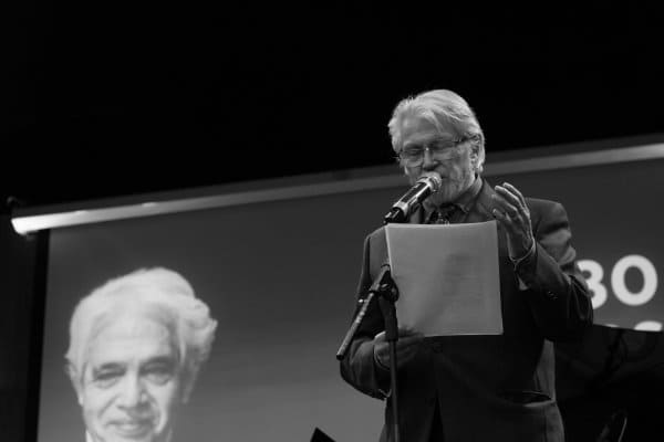 Nuevamente en el escenario de la Universidad Central, el pianista homenajeado invitó al actor Luis Vera a recitar un poema del escritor uruguayo Mario Benedetti y otro de Pablo Neruda, acompañándolo con música del compositor y pianista catalán Albert Guinovart. En este momento, el maestro Bravo también dio un agradecimiento a la Universidad Central por el espacio para impartir la cátedra y reflexionó en torno a los trabajos que le presentan sus estudiantes sobre las diversas temáticas que les plantea clase a clase.