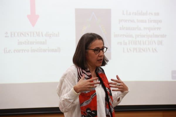 En su charla, Berruecos comentó sobre la importancia del acompañamiento a las instituciones que se encuentran en transición hacia una educación a distancia digital “la idea es ir acompañando a las Universidades para ir tomando en cuenta, este ecosistema que no es algo aislado y en el que muchas áreas se van integrando para lograr la calidad en nuestros estudiantes”.