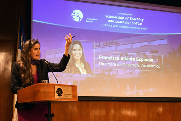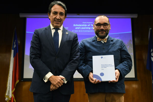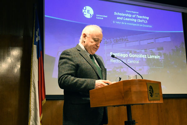 Uno de los momentos más destacados fue la conferencia del académico Óscar Jerez Yáñez, titulada «Scholarship of Teaching and Learning (SoTL): El valor de la investigación en docencia». Jerez, académico titular de la Universidad de Chile y especialista en Psicología y Educación, enfatizó la docencia como una práctica reflexiva e investigada sistemáticamente, enfocada en el aprendizaje de las y los estudiantes. Explicó que el enfoque SoTL promueve una investigación rigurosa de los procesos de enseñanza-aprendizaje en contextos reales, con metodologías sólidas y resultados que puedan ser difundidos y replicados. «Investigar en docencia no es solo generar papers, sino transformar el aula y mejorar la experiencia de aprendizaje», afirmó.