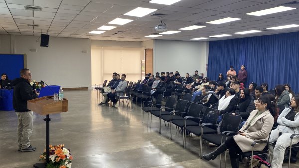 Posteriormente, a las 12:00 horas en el Salón de Eventos del Campus VKII, se realizó una charla magistral centrada en “El rol social de la Kinesiología en Chile”, espacio donde estudiantes y docentes reflexionaron sobre los desafíos actuales de la profesión y su impacto en el bienestar de la población.