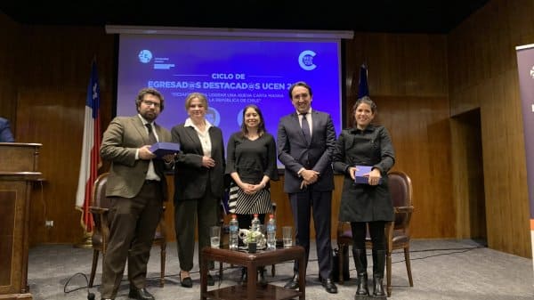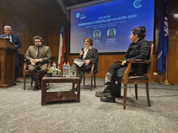 En una Aula Magna repleta se realizó anoche el conversatorio “Desafíos para lograr una nueva Carta Magna para la República de Chile”, tercera Charla del Ciclo Egresad@s Destacad@s UCEN 2023, organizada por la Vicerrectoría Académica, la Red de Egresados de la Universidad y la Facultad de Derecho y Humanidades (FACDEH).