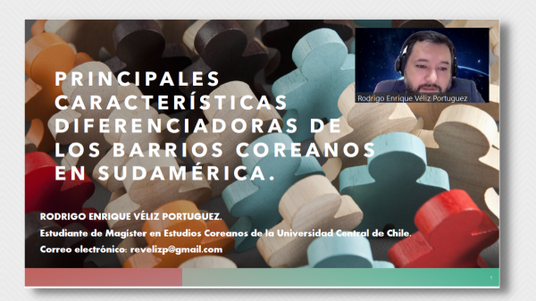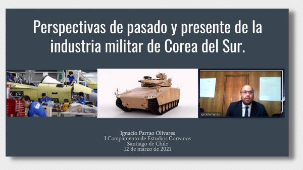 Como parte de la mesa “Puente entre Corea y América Latina”, participantes del Magíster en Estudios Coreanos abordaron variadas temáticas sobre Corea. Ignacio Parrao, analista del Centro de Estudios e Investigaciones Militares y recientemente titulado del programa de magíster, presentó parte de su trabajo de tesis de grado en la exposición “Perspectivas de Pasado y Presente de la Industria Militar de Corea del Sur”, que abordó la importancia geoestratégica de la defensa para el país.