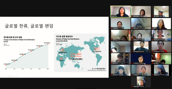 La Dra. Choi, quien se ha dedicado a la investigación de los fans del Hallyu en Chile, explicó las formas en que se acepta e intercambia un fenómeno cultural externo ―como lo es la Ola coreana― en América Latina, incluyendo Chile. Además, se discutió cómo la cultura pop coreana constituye nuevos métodos de intercambio y comunicación, a través de la universalidad y singularidad del fandom latinoamericano de Hallyu.