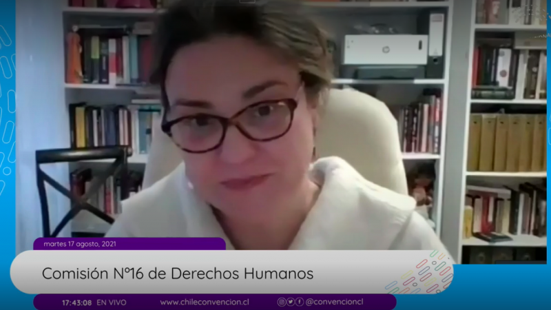 La académica de la Facultad de Derecho y Humanidades (FACDEH), Dra. María Angélica Benavides, presentó el martes 17 de agosto, en la décimo sexta reunión de la Comisión de Derechos Humanos (DD.HH.) de la Convención Constitucional (CC), en el marco del panel de audiencias públicas, en su calidad de experta en Derecho Internacional.