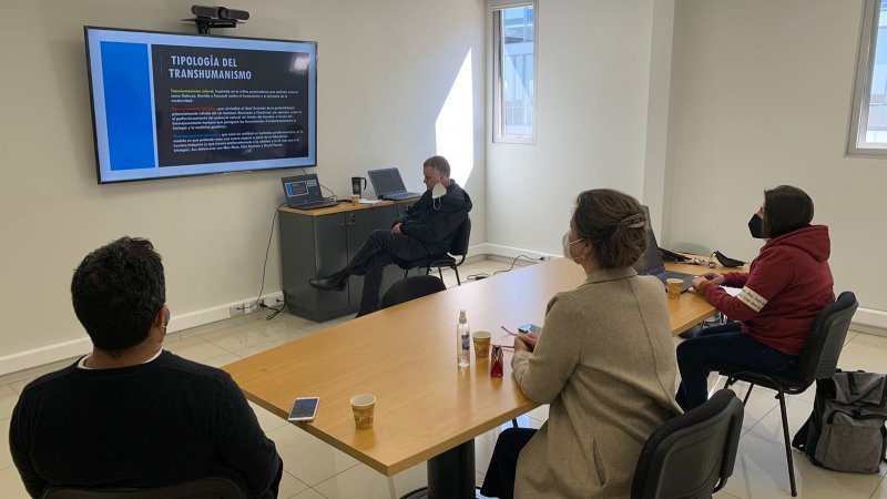La clase, titulada “Transhumanismo, inteligencia artificial y Derecho: los retos del jurista en la era digital”, fue dictada de manera remota por el académico, desde Sevilla en España. Fue seguida por algunos estudiantes y docentes desde sus casas y por un pequeño grupo desde la Sala de Doctorado 1 en la Torre C del Campus Gonzalo Hernández Uribe, donde se desarrolla este programa.