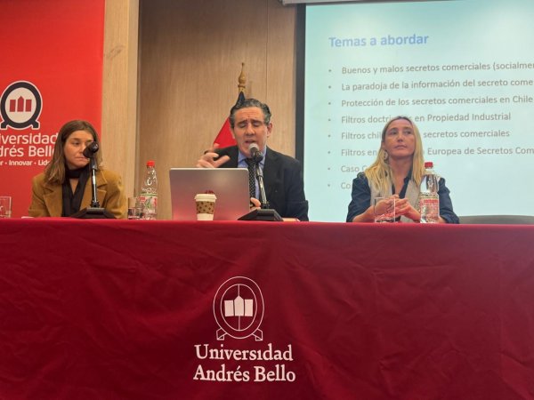 El decano Rafael Pastor intervino en la mesa "Propiedad Intelectual en la Era Digital: Secretos Comerciales, Trazabilidad Biogenética e Invención Algorítmica" con la ponencia "Buenos y malos secretos comerciales: una aproximación crítica desde la Ley 19.039". "Exploré cómo los filtros doctrinales permiten atenuar los efectos dañinos de los secretos industriales y cómo la legislación chilena aún presenta vacíos", explicó la autoridad.