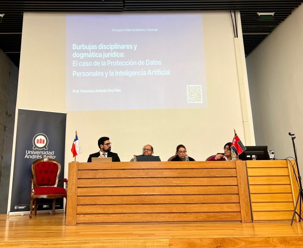 En el plenario inaugural "Problemas del uso de IA y sistemas de decisiones automatizadas bajo el derecho chileno", el Dr. Pablo Contreras expuso los hallazgos de su proyecto Fondecyt "Los límites a la adopción de decisiones automatizadas en la Administración del Estado" con la ponencia "La transparencia algorítmica ante el derecho chileno: el caso del Consejo para la Transparencia". Mientras tanto, el doctorando Pablo Viollier presentó "Uso de espacios controlados (sandbox regulatorios) para el desarrollo de modelos de IA: comparación entre la AI Act de la Unión Europea y el proyecto chileno". "Los sandboxes son verdaderos laboratorios jurídicos; entender sus diferencias es clave para no frenar la innovación ni sacrificar derechos", advirtió.