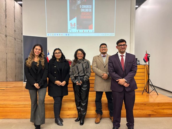 En la mesa estudiantil "Nuevas Generaciones Jurídicas ante la Disrupción Tecnológica: Análisis Crítico de Casos y Propuestas Emergentes", los recién egresados Catalina Rivera, Rodrigo Troncoso y Valentina Warner expusieron "El algoritmo de sugerencia de riesgo del Ministerio Público: un caso de discriminación algorítmica en Chile", investigación iniciada en 2024 en la cátedra de LegalTech dirigida por la Dra. Finol. "Escuchar a otros ponentes sobre inteligencia artificial fue enriquecedor; fortalecimos nuestras líneas de investigación y generamos nuevas ideas", valoró Warner, quien agregó: "Espero que la Facultad continúe impulsando estas instancias, fundamentales para nuestra formación".