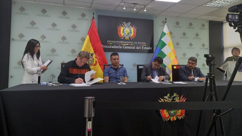 En 2001, el profesor Stippel presentó una demanda contra Bolivia frente a la Comisión Interamericana de Derechos Humanos. Aquí detalla las múltiples violaciones a los derechos humanos que habían sufrido los integrantes del caso EGTK. En 2005, la Comisión declaró la admisibilidad del caso. Desde la presentación a la fecha han pasado 23 años y tres intentos de mediación. Por fin el 20 de agosto llegaron a firmar un acuerdo amistoso el que fue firmado por el profesor Stippel y el Procurador General del Estado Plurinacional de Bolivia, César Siles.