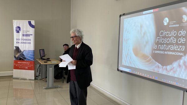 Por su parte, el director del Doctorado en Derecho, profesor Jorge Ulloa, advirtió que la reflexión sobre “la naturaleza, el espacio, el tiempo, la humanidad, la libertad, constituye una urgencia para el debate público del cual nuestra casa de estudios no solo no puede estar ausente sino que debe promover”. “Como universidad creemos que posibilidades como este simposio permiten dar sentido a la academia, honrar la palabra universita y, más relevante aún, acoger los sentidos de los diálogos filosóficos”, agregó el Dr. Ulloa.
