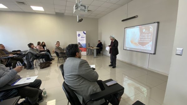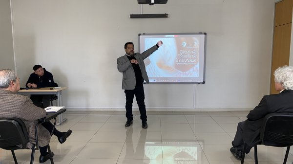 Luego, el fundador del Círculo de Filosofía de la Naturaleza, el filósofo franco-chileno, Miguel Espinoza, quien se especializa en la filosofía de la naturaleza, de la física y de la matemática, explicó que “la necesidad de interiorizar que constituye cada uno de nosotros ha determinado nuestra amistad intelectual, el sentimiento que nos lleva a compartir lo que hemos logrado intuir y entender sobre nuestros problemas filosóficos-científicos, relativos a la naturaleza”.
