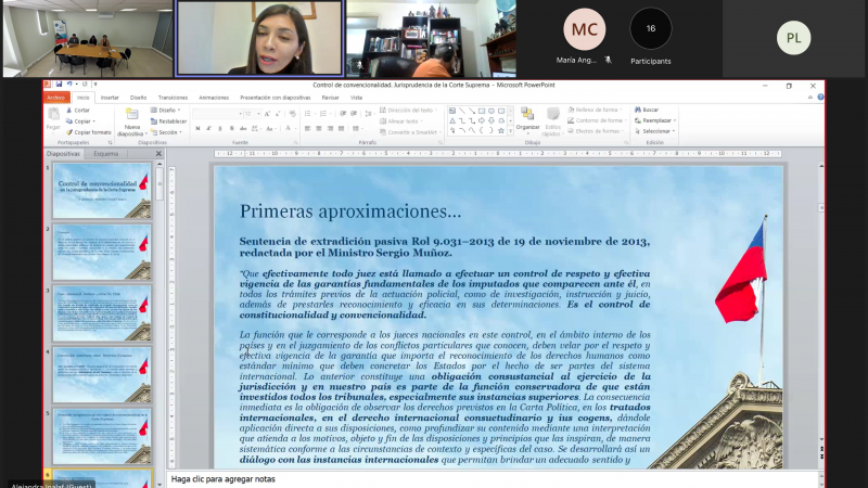 La egresada centralina y abogada de la Dirección de Estudios de la Corte Suprema Alejandra Inalaf, expuso en el Doctorado en Derecho sobre la jurisprudencia del máximo tribunal en materia de aplicación de tratados internacionales de Derechos Humanos (DD.HH.).