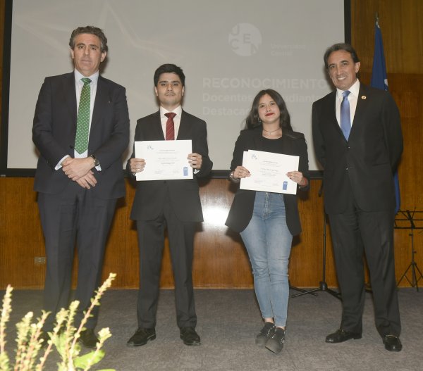 En el área estudiantil, por segundo año consecutivo el estudiante de Derecho Óscar Gómez González, destacó por su excelencia académica y dedicación. Para Trabajo Social, el reconocimiento recayó en Catalina Vargas Araya, quien obtuvo el mejor promedio de su generación entre alumnos y alumnas de segundo a quinto año de carrera.