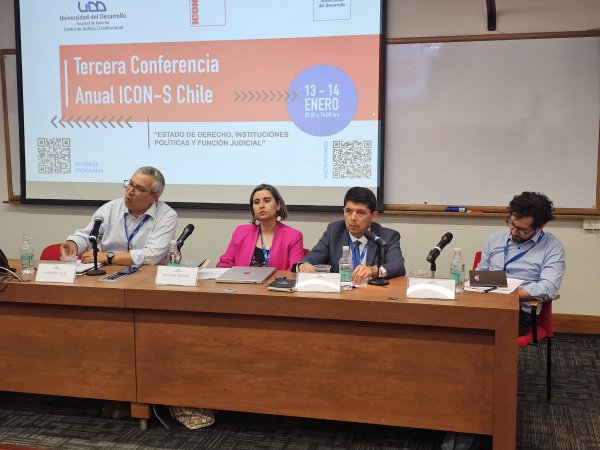 Durante el lunes 13 y martes 14 de enero, la Universidad del Desarrollo (UDD) acogió el tercer encuentro anual del Capítulo Chileno de la Sociedad Internacional de Derecho Público (ICON-S). Bajo el título Estado de Derecho, Instituciones Políticas y Función Judicial, el evento reunió a más de 100 expertos en Derecho Constitucional y Público para analizar temas como el constitucionalismo chileno, derechos humanos, independencia judicial y organismos reguladores económicos. En representación de la Universidad Central (UCEN), participaron destacados académicos y doctorandos, consolidando la posición de la institución como referente en Derecho Público.