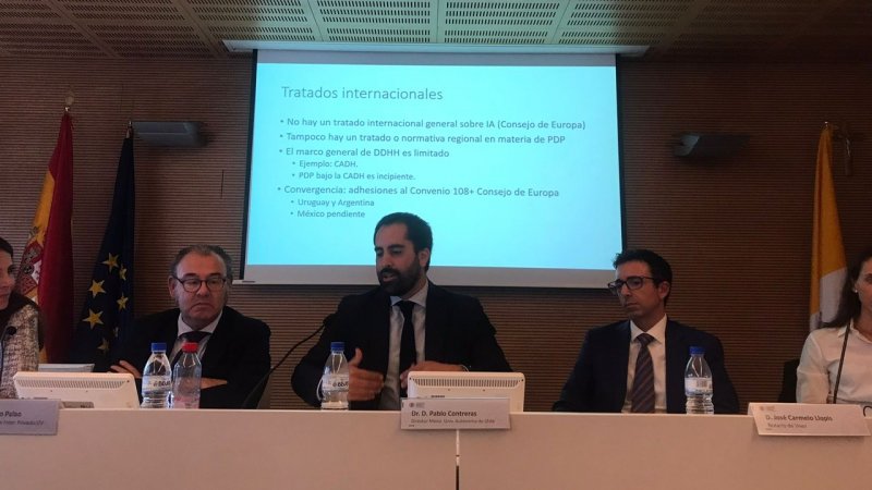 El académico de pre y postgrado de Derecho habló sobre derecho e inteligencia artificial y del proceso constituyente chileno en Barcelona y Valencia.