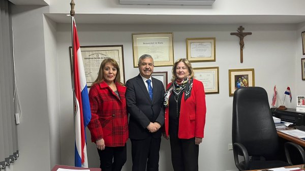 El último día de su viaje, el viernes 14 de julio, también fue intenso: en la mañana visitó el Registro de la Propiedad, donde realizó una charla para funcionario del sistema de registro de la propiedad en Chile, terminando así su trabajo en la DGRP del Paraguay. Esa tarde conoció la Universidad del Norte de Asunción y se reunió con la Decana de la Facultad de Derecho y Ciencias Políticas, Carmen Gubetich, para explorar instancias de colaboración mutua entre ambas casas de estudio.