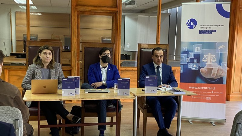 El espacio, que fue moderado por el coordinador de investigación del Instituto y miembro del Claustro Doctoral, Dr. Federico Szczaranski, contó con la presentación de la Dra. Lucía Rizik, directora Escuela de Derecho Universidad Diego Portales (UDP), coordinadora del libro junto a la profesora y egresada UCEN Fernanda Tapia. “La coordinación de un libro colectivo nunca es tarea fácil”, confesó la profesora Rizik y destacó que “la principal característica de Pensamiento Jurídico Central es el esfuerzo por incluir a las Ciencias Sociales en la esfera del Derecho”.