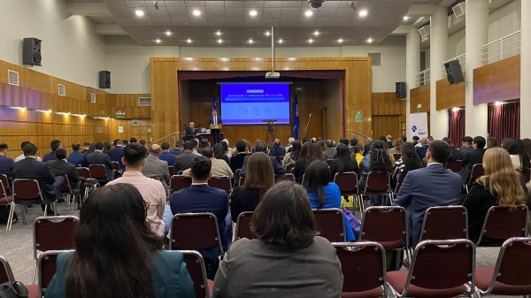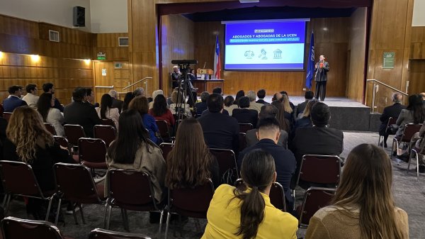 La Facultad de Derecho y Humanidades (FACDEH) celebró el miércoles 16 de octubre el II Encuentro de Abogados/as de la Universidad Central de Chile en el Aula Magna Fundadores, bajo el lema "Reconociendo nuestra historia para construir el futuro". Este evento reunió a egresados y egresadas de distintas generaciones, destacando su contribución a lo largo de los 42 años de trayectoria de la Facultad.